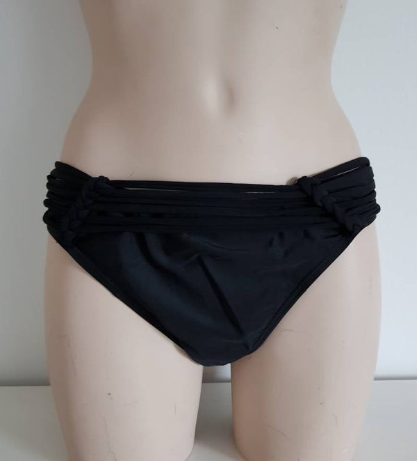 Trendy zwart bikinibroekje met bandjjes bij de taille voor een speels effect. Ook in rood.