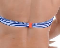 Mooie Esprit bikinitop in haltermodel, blauw-wit gestreept, softpadded.