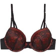 Gave push-up BH van Esprit. Rode voorgevormde cup, met beugel, met zwart kant over de cup.