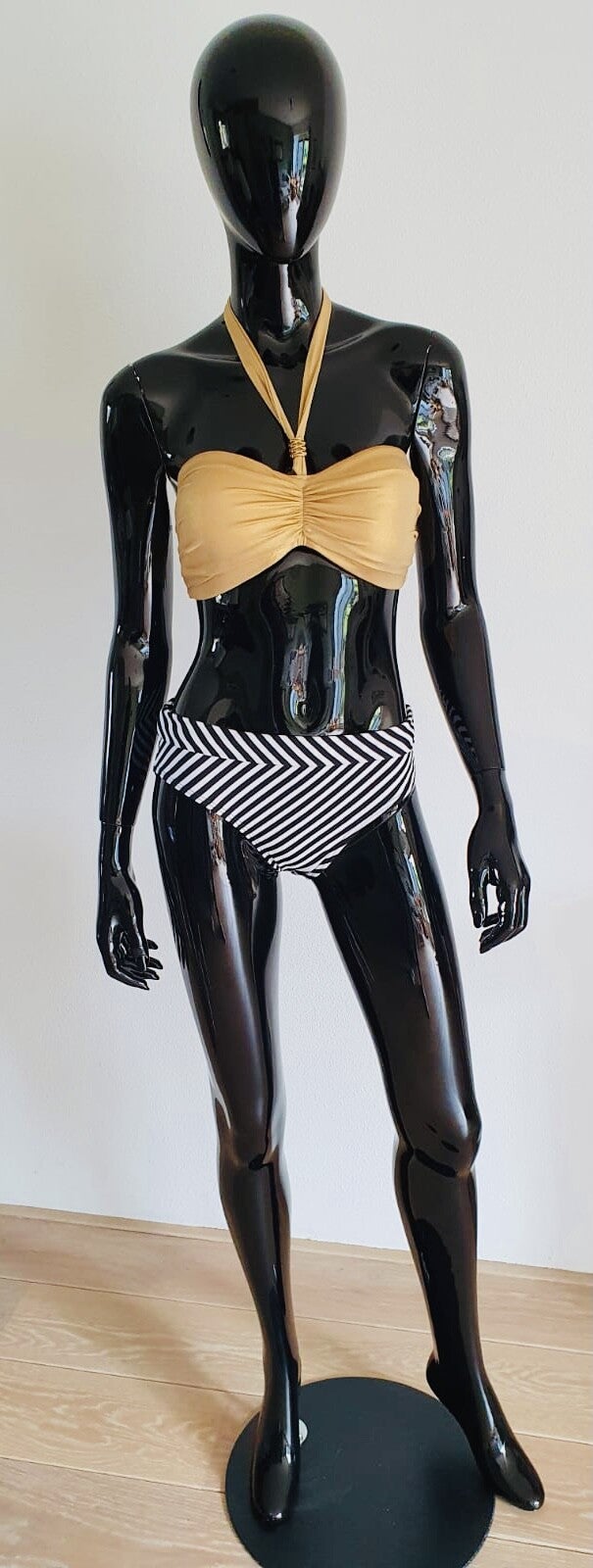 Supergave "gouden" voorgevormde bikinitop met beugel. Uitneembare push ups.