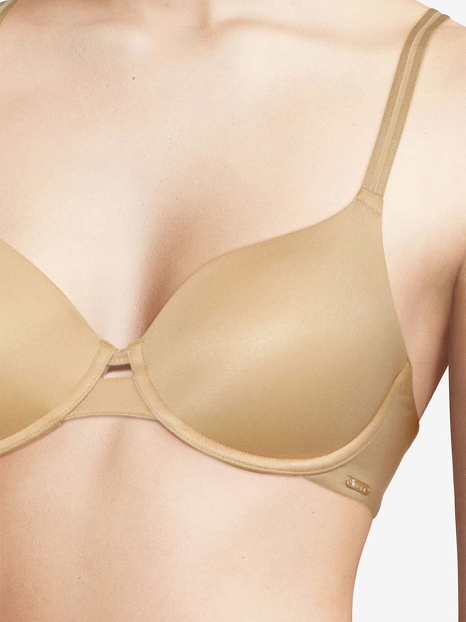 Mooie zachte en comfortabele voorgevormde beugelBH in een makkelijke beige kleur.