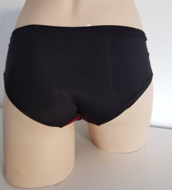 Zwarte slip, kanten voorkant met een rode ondergrond